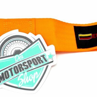 Abschleppschlaufe in Gurt-Ausführung in den Farben: rot, blau, orange, grün, schwarz, braun, grau erhältlich, mit M14 Schraube und Metallöse zum Befestigung der Abschleppöse an Wunsch-Stelle am Fahrzeug. Muss auf jedes Fahrzeug angepasst werden.